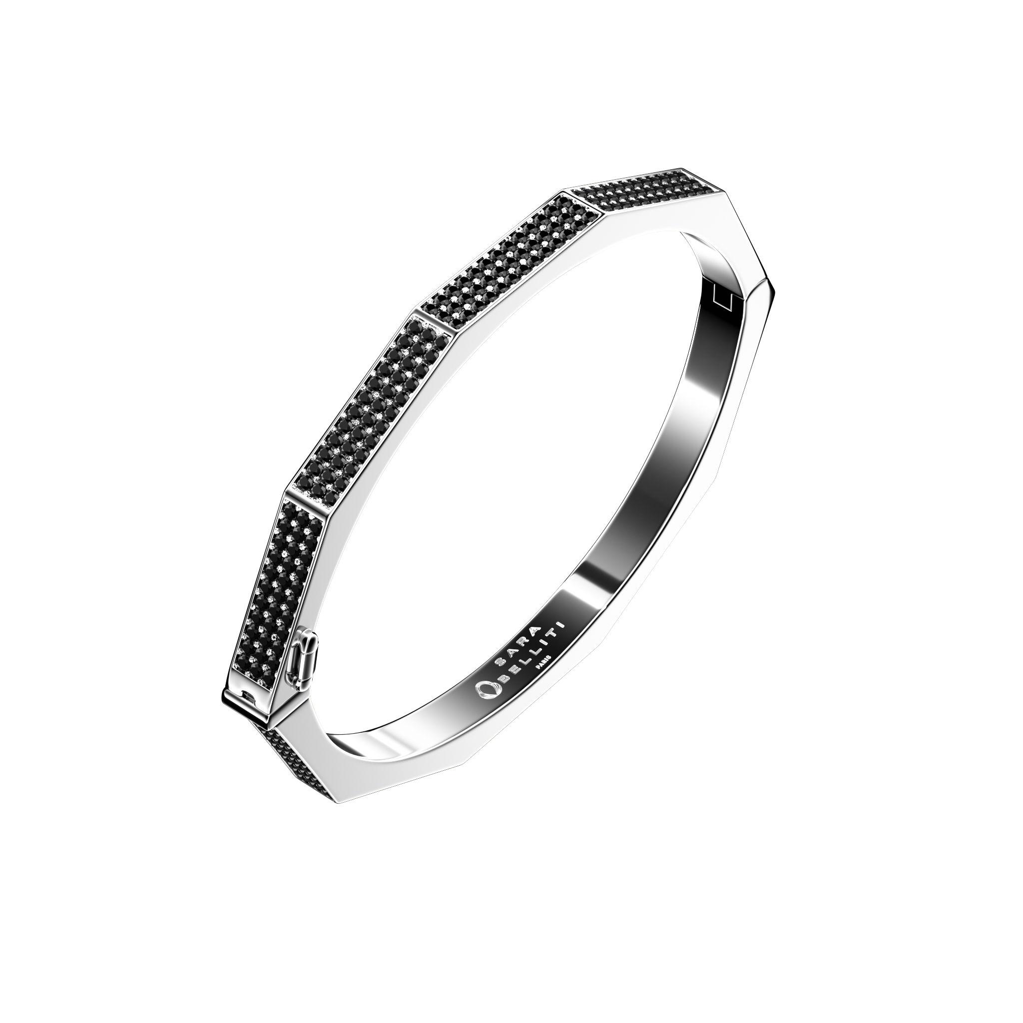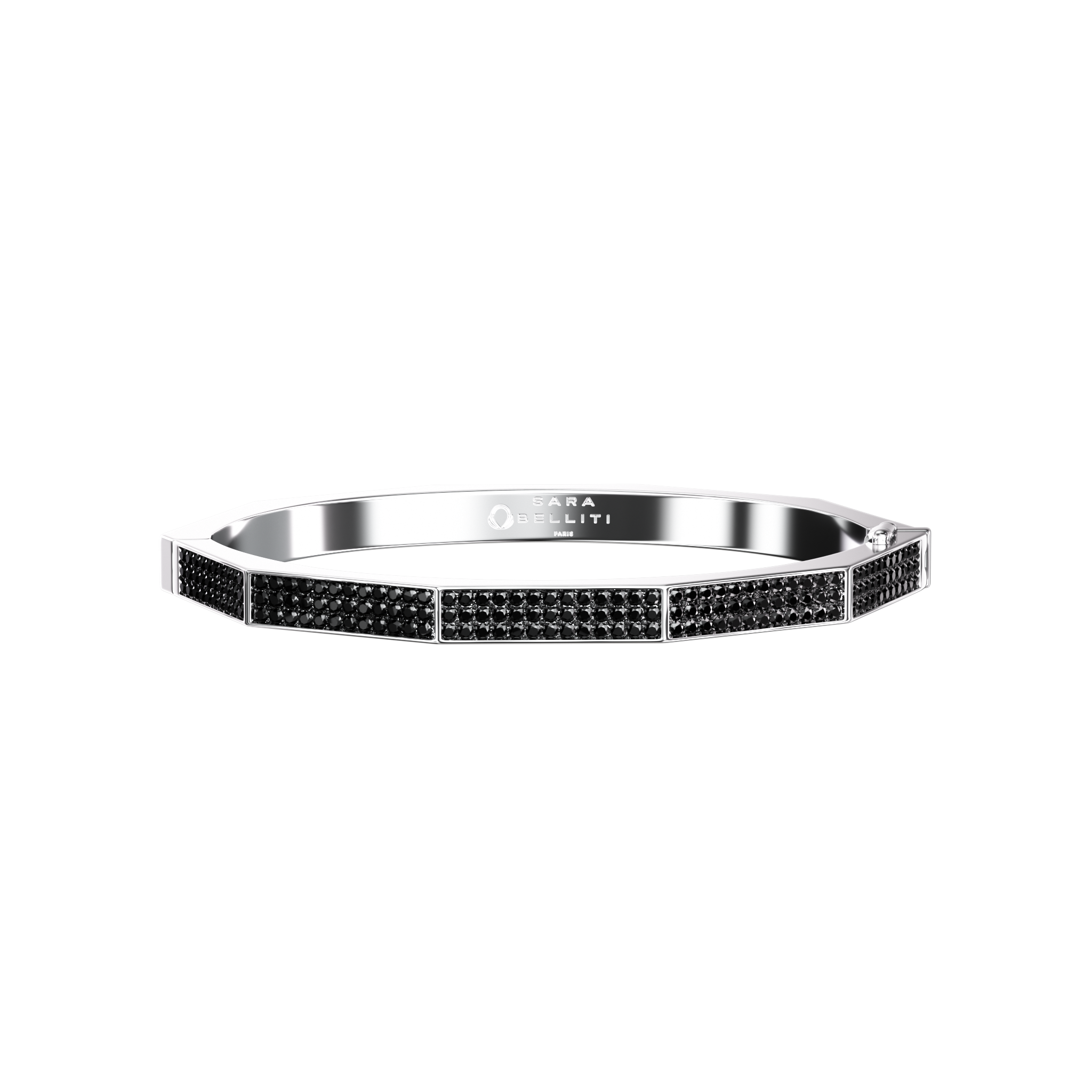 Notre bracelet NIDO entièrement serti de diamants noirs est fabriqué à la main. Les diamants noirs apportent du caractère au bijou et symbolisent la pureté.