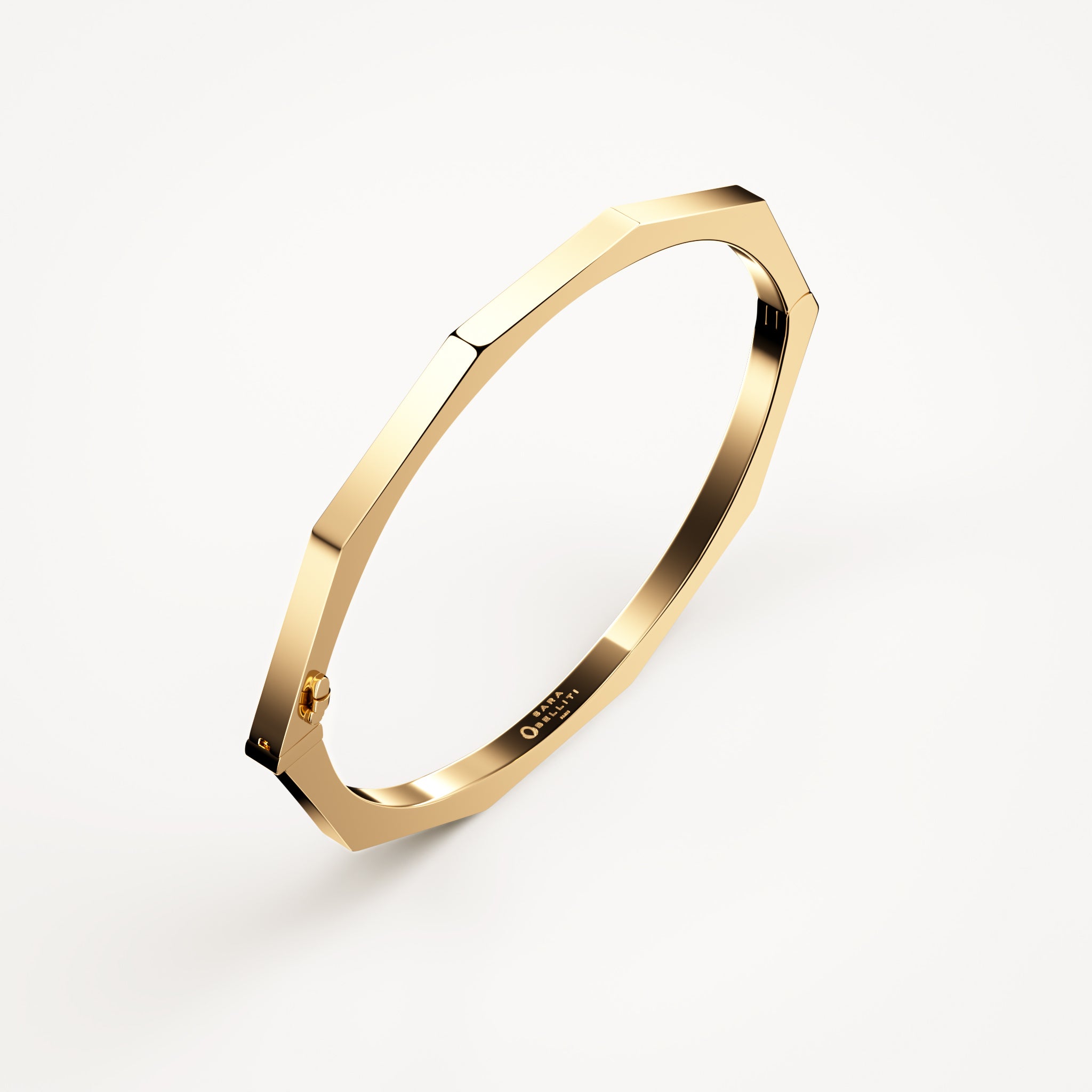 Notre bracelet NIDO en or jaune 18 carats est entièrement fabriqué à la main. Sa structure en nid d'abeille permet à la lumière de se refléter magnifiquement, créant un jeu de brillance unique.