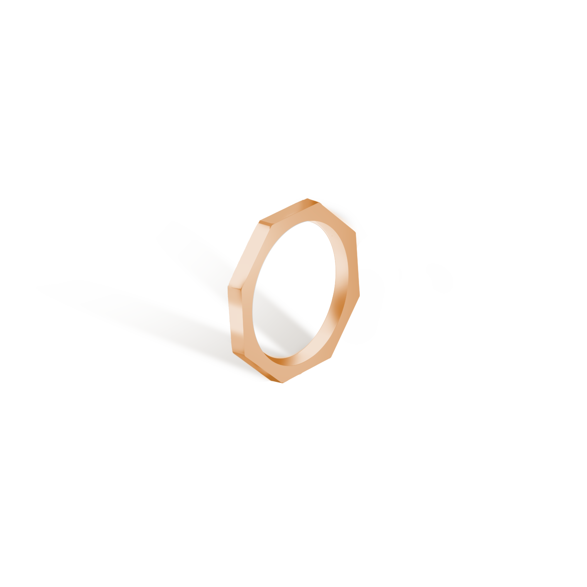superposée avec d'autres bagues NIDO de différentes couleurs et métaux. Elle peut également se porter seule comme alliance de mariage. NIDO, nid en italien en référence à sa forme en alvéole.