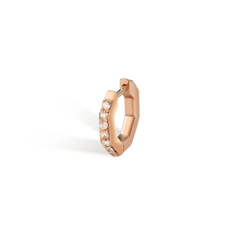 Notre créole NIDO en or rose 18 carats et diamants est fabriquée main. Ses diamants lui apportent une touche d'élégance intemporelle.