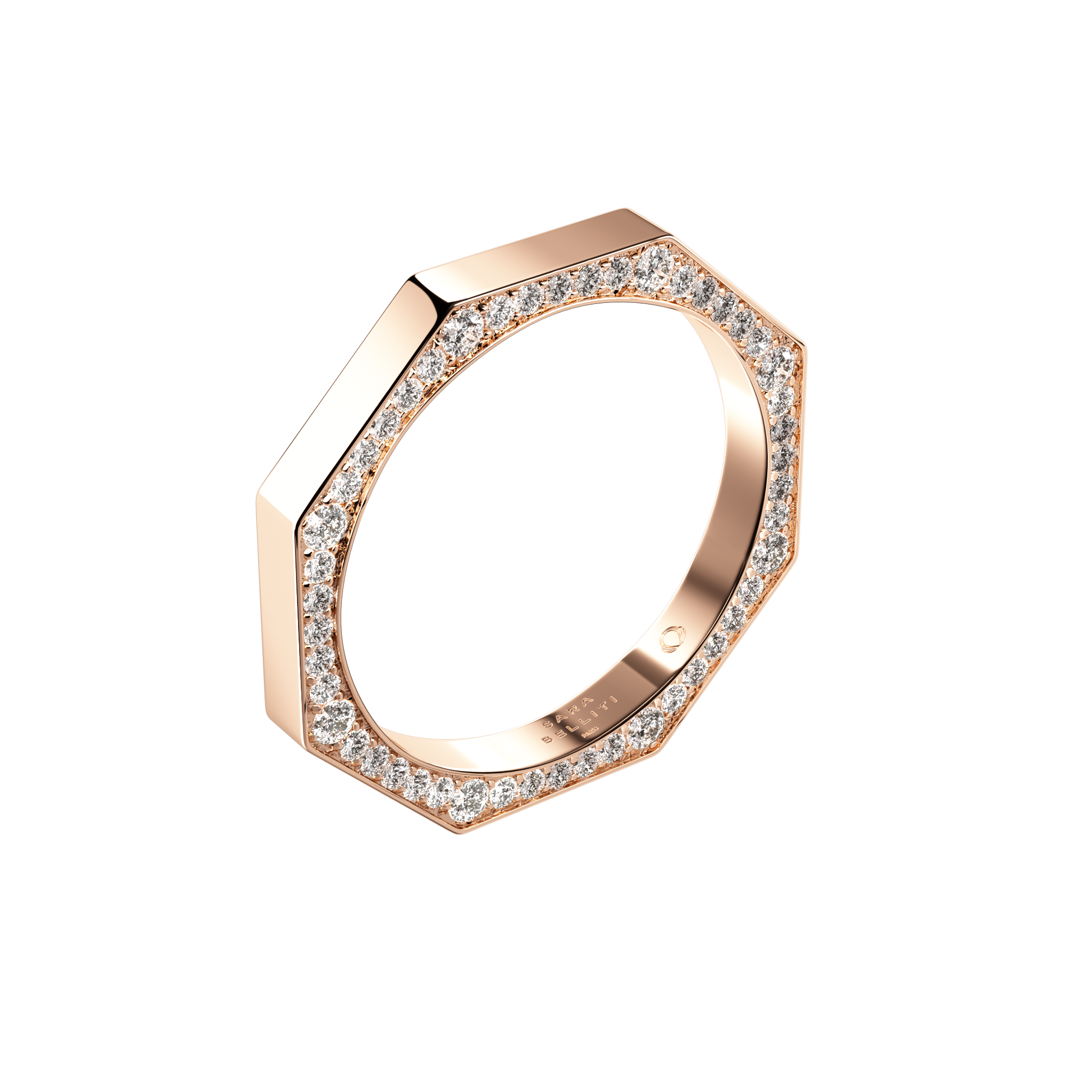Notre alliance NIDO en or jaune 18 carats, sertie de diamants sur les côtés, est fabriquée à la main. Les diamants, présents sur deux faces du bijou, créent un éclat fascinant sous tous les angles.